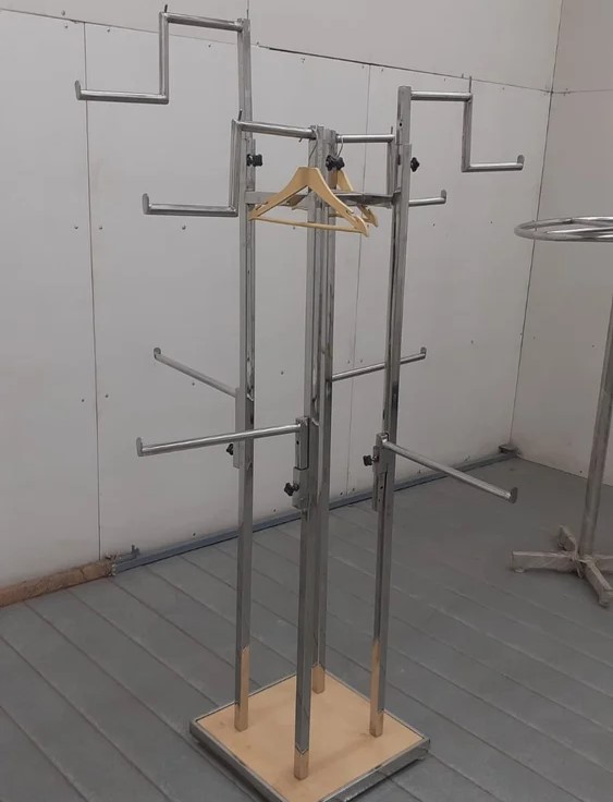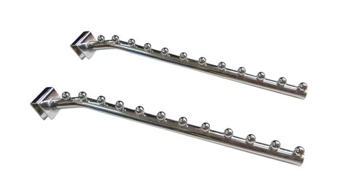 Hanging item racks can be made in form of stands, main purpose it to hang item for selection of cloth by fabric or total design overview of cloth which cannot be possible when garment is on shelf. Hanging item racks is suitable for shirts, trousers or ladies clothing display which is becoming popular in almost all supermarket stores and hypermarkets for customer selection.